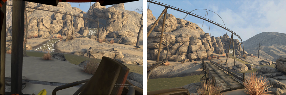 Compared to the Oculus Quest 2 / all-in-one system’s native experience, it was clear to see Cloud-XR significantly enhanced the graphical experience. Image quality and resolution was greatly improved over the native experience, especially in the water texture.