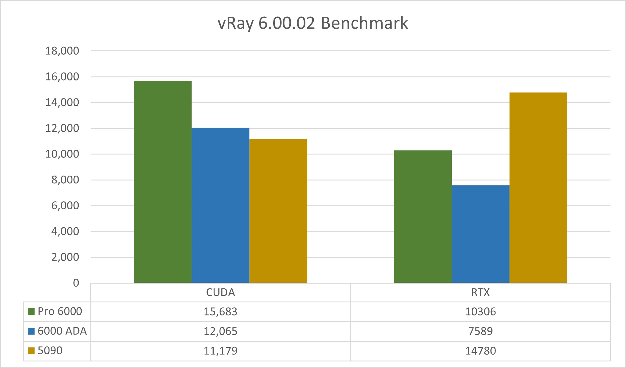 In CUDA performance, the NVIDIA RTX Pro 6000 outpaced the RTX 6000 ADA by nearly 30% and the RTX 5090 by over 40%. However, in RTX performance, while it still beat the RTX 6000 ADA by almost 39%, it was surpassed by the RTX 5090, which delivered just over 30% better performance.